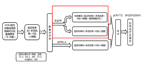 新辅助治疗是指手术前使用的治疗方法,早期HER2阳性乳腺癌患者的标准治疗之一。曲妥珠单抗作为抗HER2靶向治疗的基石[2],能够提高化疗效果。新辅助治疗不仅旨在缩小肿瘤体积,还提供了一个独特的机会来评估药物的敏感性,这对于确定最适合的后续辅助治疗策略至关重要。然而,对于术前曲妥珠单抗无效(不敏感)的患者,如何进一步提高治疗效果仍是一个亟待解决的问题。